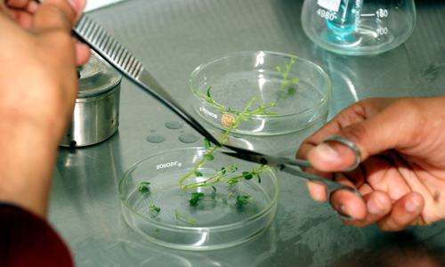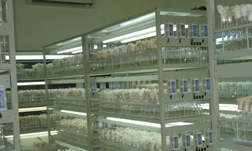 The micro propagation unit is equipped with the finest equipment for sterilization, media preparation, nodal cuttings, microplant growth and germplasm storage. All the instruments are calibrated semi-annually to ensure proper functioning. The growth rooms have a capacity to hold 0.65 million plants.